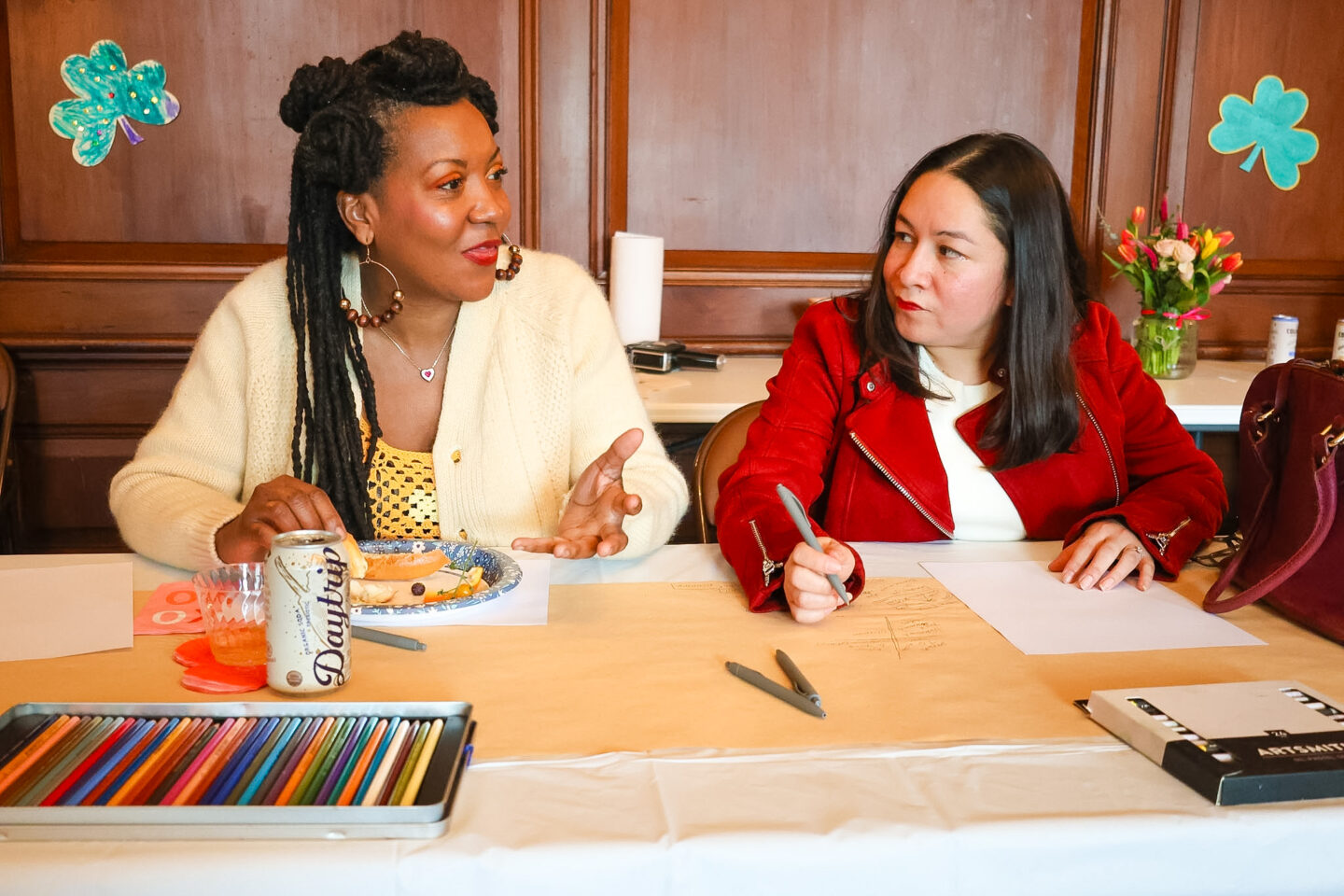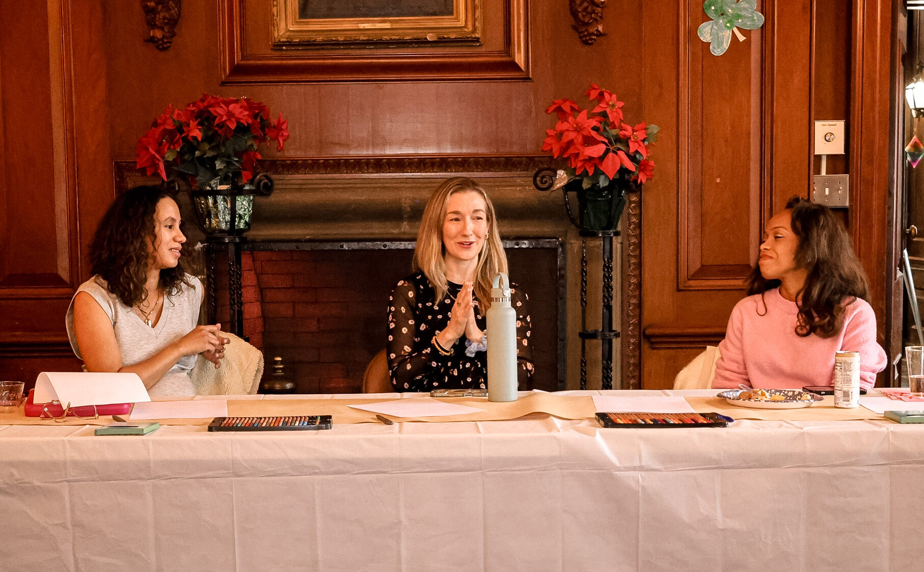 Here is recap of last weekend’s International Women’s Day gathering, She Spoke Up! We came together to talk about something many of us are navigating right now: how to speak up during uncertain times while protecting our mental and emotional well-being. It was a thoughtful and energizing conversation with our speakers Gwen Pepin (Democratic Party of Illinois), Ashley Alvarez (attorney and community advocate), and Jacqueline Carmody (art therapist). The room was full of women ready to listen, share honestly, and think about what action looks like in our everyday lives.